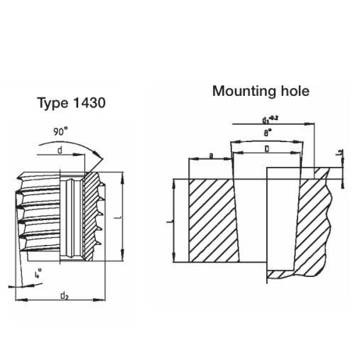 QUICKSERT® plus consists of a tapered basic body (8° overall taper) with internal thread, additional internal hexagon and a special external thread. The profile of the external thread has an extremely small flank angle and expands asymmetrically towards the thread root. Driving torques for installation are thus reduced.