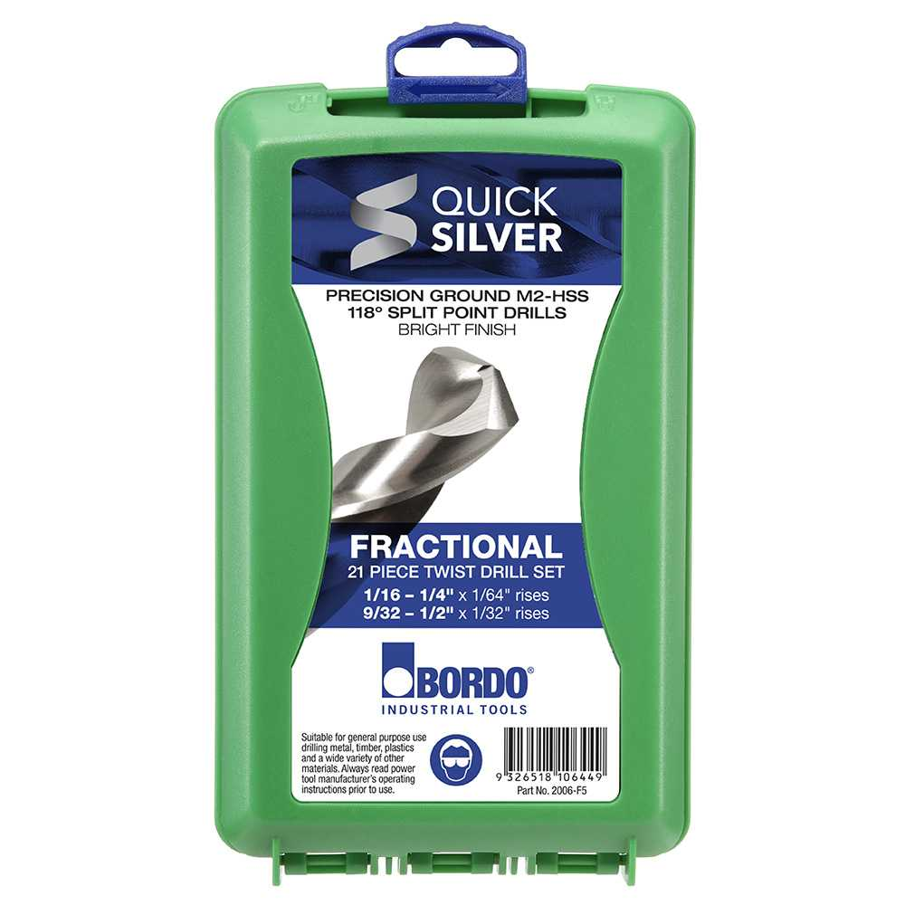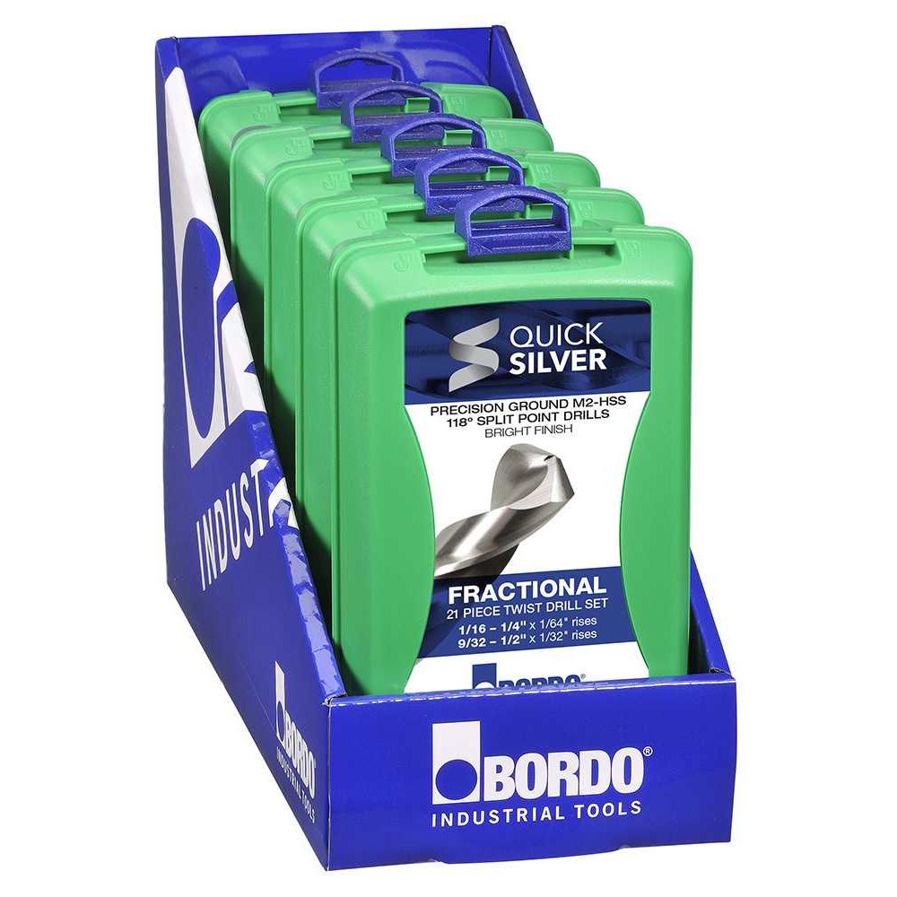 - Bordo Fractional Quick Silver M2-HSS Twist Drills.