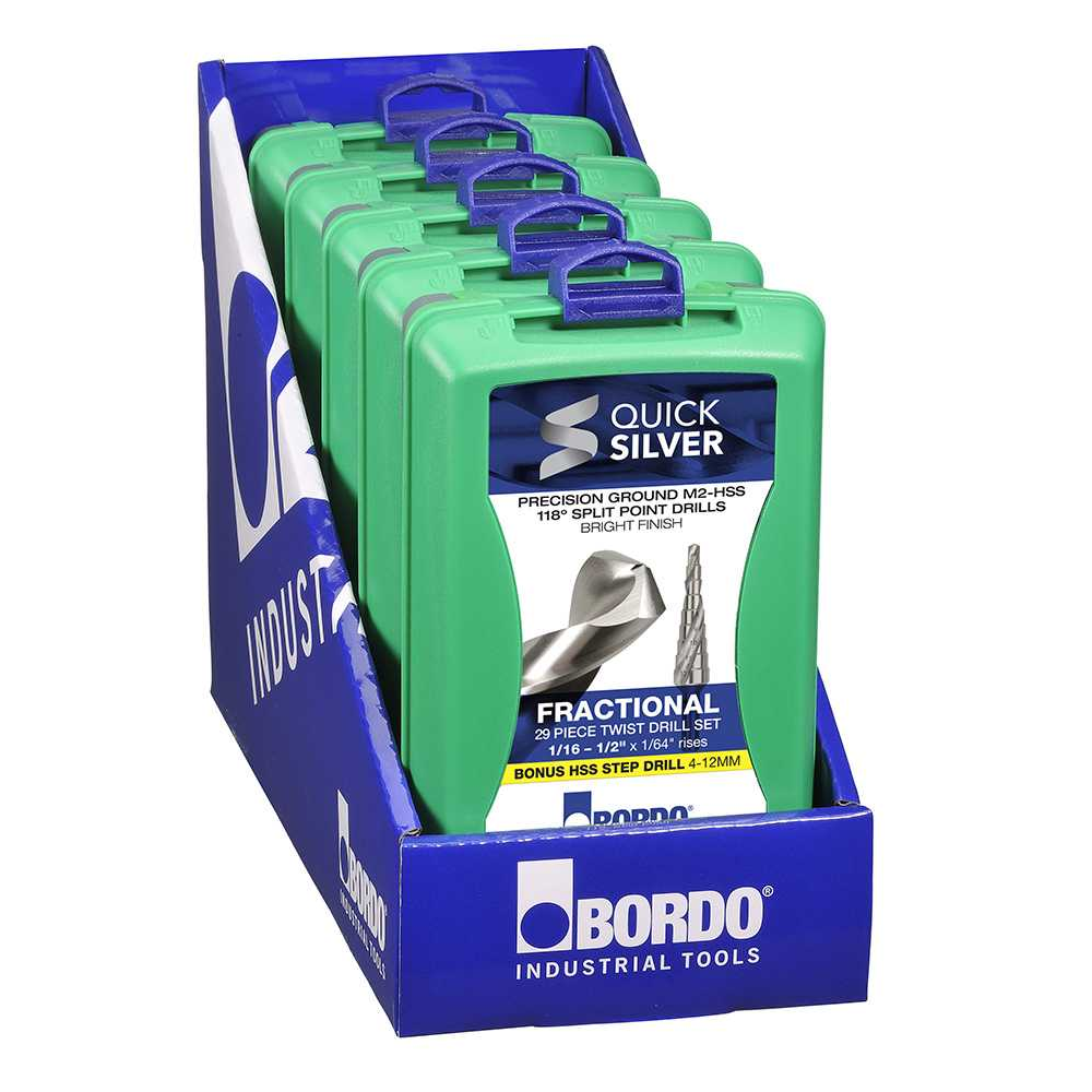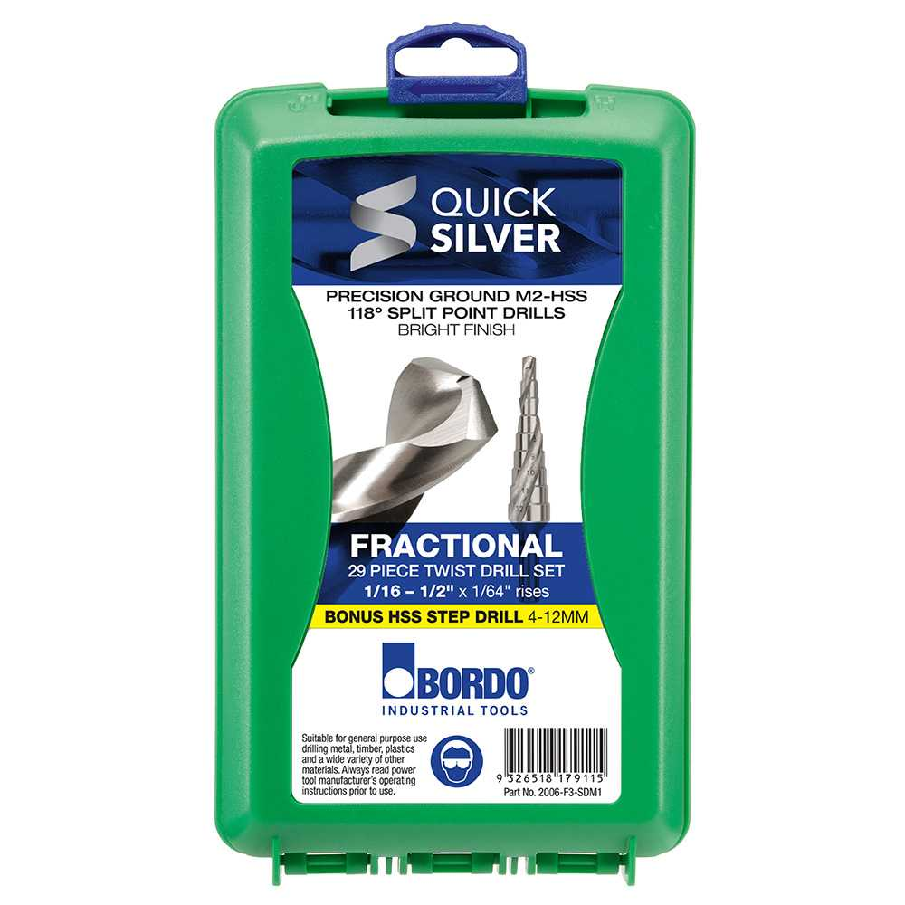 - Bordo Fractional 29 Piece Quick Silver M2-HSS Twist Drill Set in ABS Plastic Case