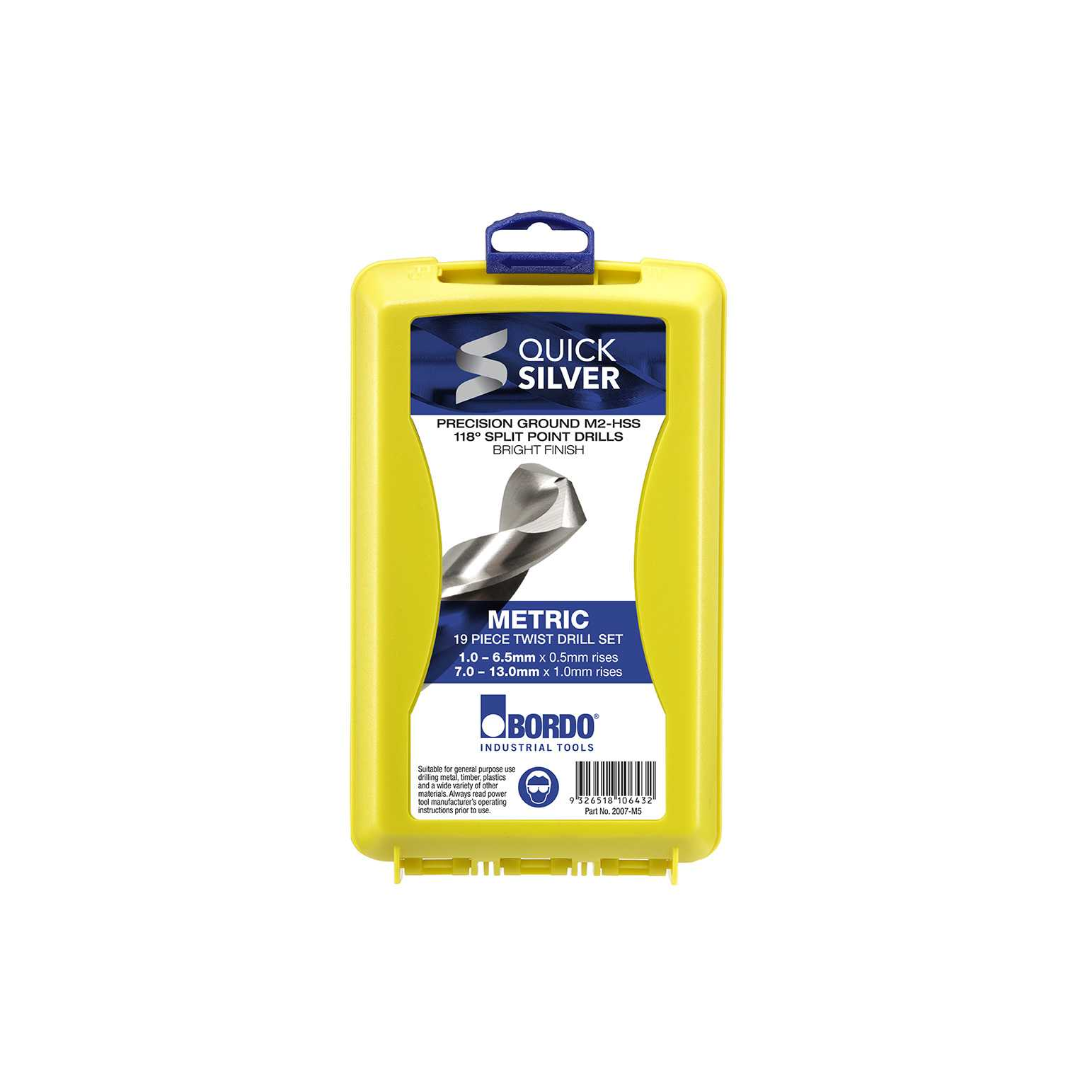 • Bordo Metric 19 Piece Quick Silver M2-HSS Twist Drill Set in ABS Plastic Case