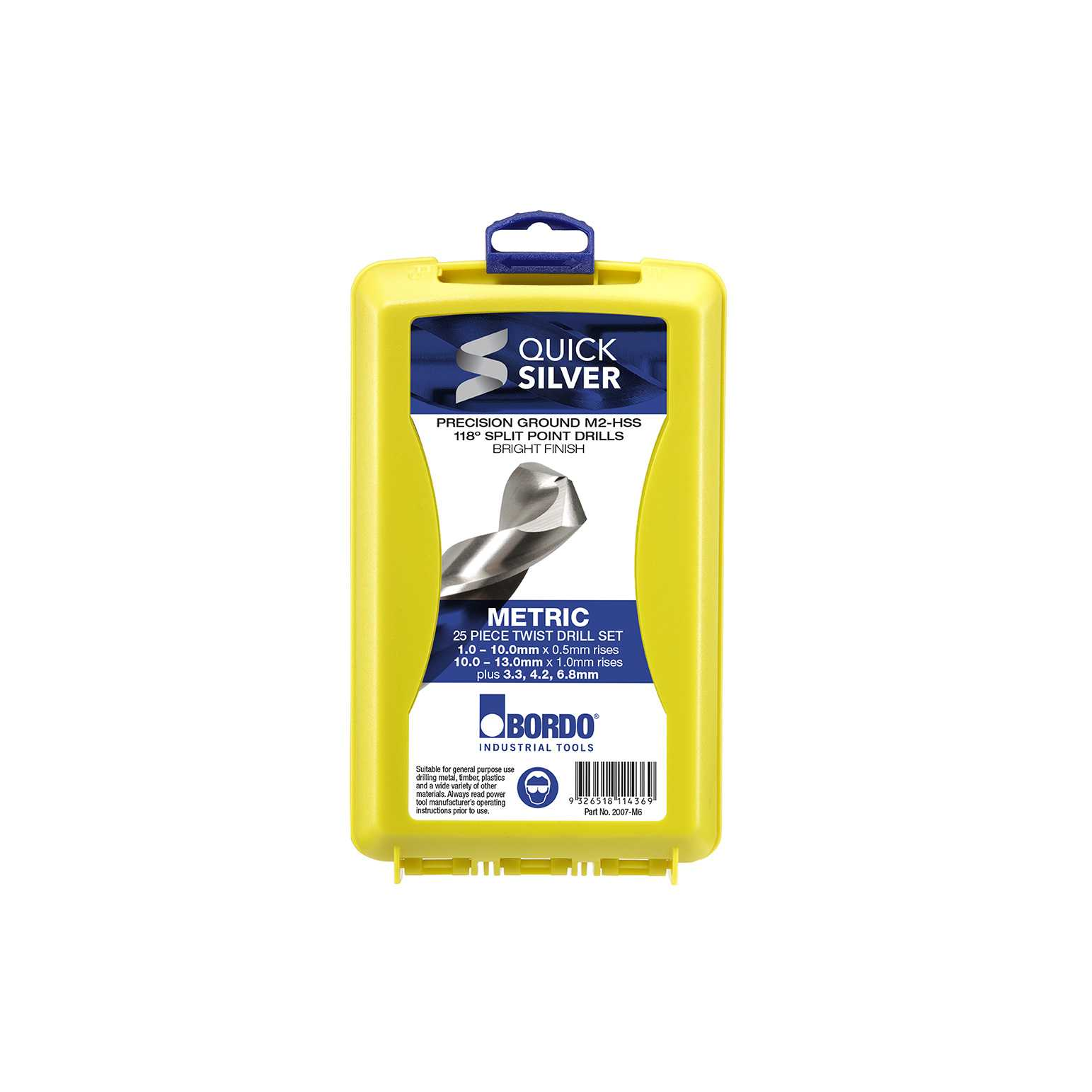• Bordo Metric 25 Piece Quick Silver M2-HSS Twist Drill Set in ABS Plastic Case