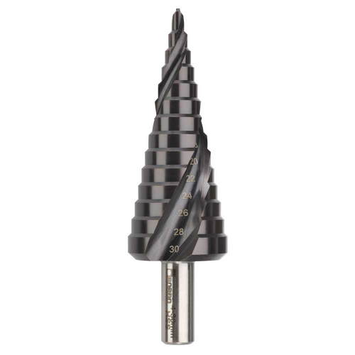 • HSS-Co5 (Cobalt) Titanium Aluminium Nitride Coated (TiAlN) Spiral Flute Step Drill 4-30mm