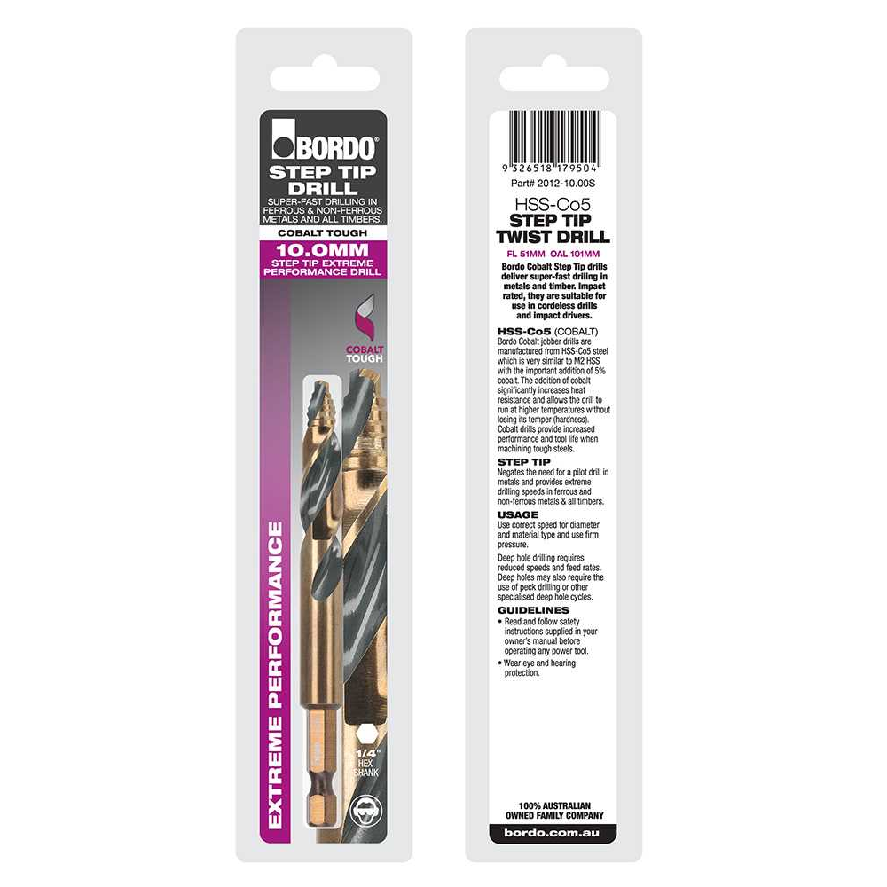- Bordo Metric Cobalt Tough HSS-Co5 Step Tip Extreme Performance Drill.