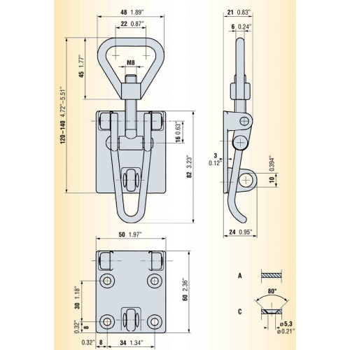 Heavy duty adjustable Toggle latch with triangle screw loop, produced from zinc plated and clear passivated Drop Forged Steel for better corrosion resistance. Product is the right choice if looking for high quality and durability. Base plate with 80 degrees countersunk holes suitable for screw down or riveting to the surface applications. Padlocable latch helps prevent unauthorized access. Ojop Sweden proudly offer a Lifetime Warranty for this product.