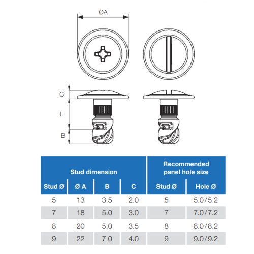 QUICKLOC® Solid is widely used where rapid assembly and disassembly is required. Simplicity of use makes it ideal when service requirements involve the removal and re-installation of panels and guards. Less than half a rotational turn releases and reengages the fastener.