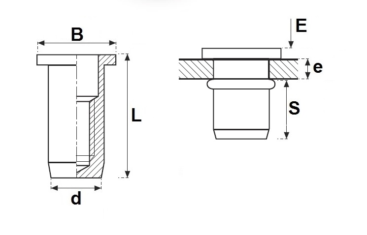 Description: Rivkle® Blind Rivet Nut, Flat Head Plain Closed, Steel